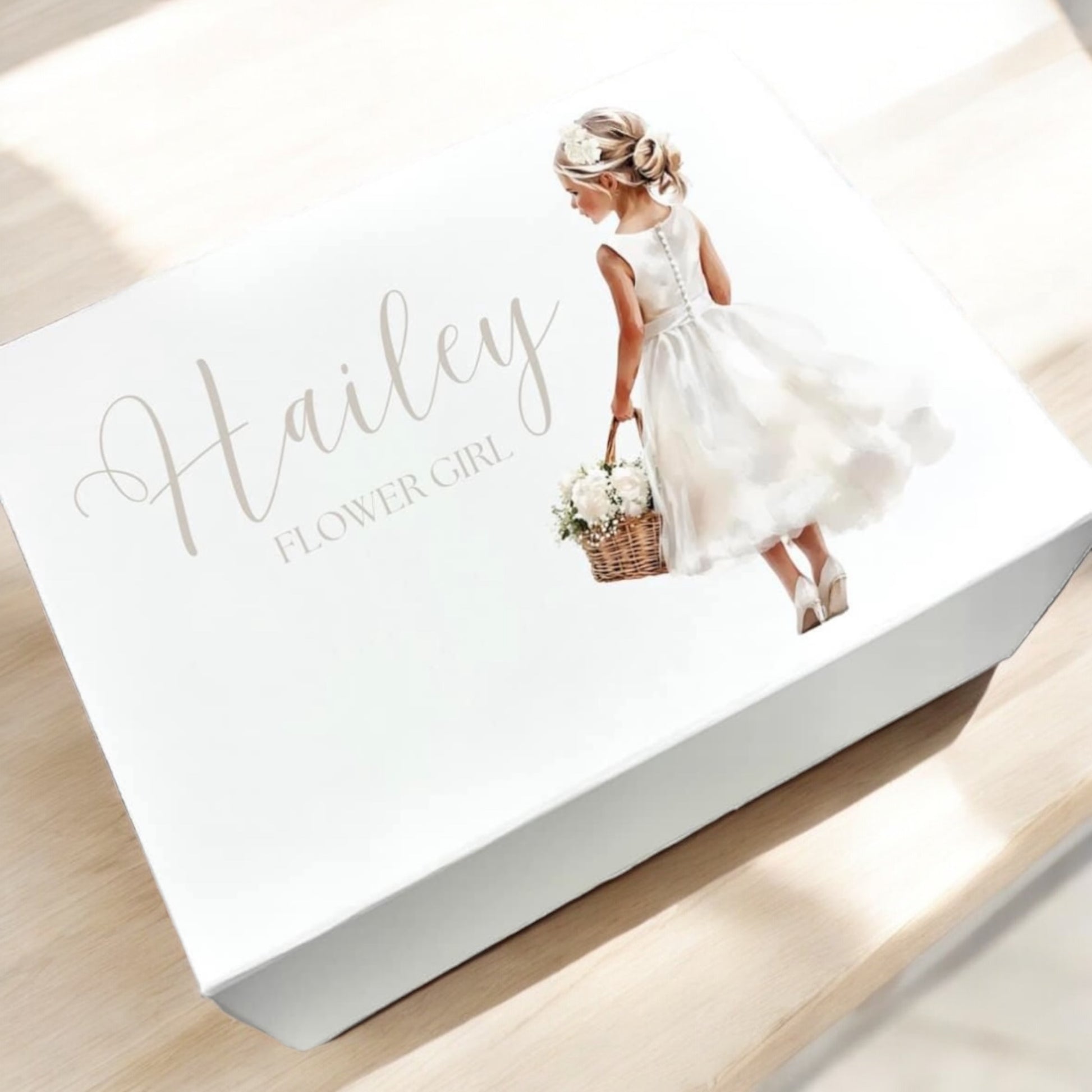 Indulge your flower girl with our deluxe gift set, featuring a 4-piece box, 16 oz cup, and two hair bows matched to her hair color and skin tone. Personalize it with her name for an extra special touch. Give her the gift of feeling beautiful and loved for your special day!